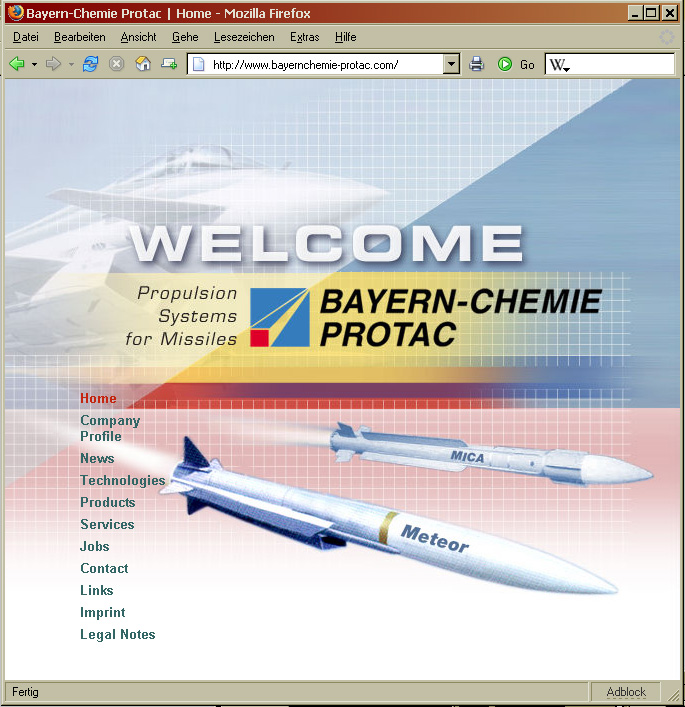 BAYERN-CHEMIE / PROTAC ist ein Gemeinschaftsunternehmen des europäischen Luft- und Raumfahrtkonzerns EADS und des französischen Rüstungskonzerns THALES.