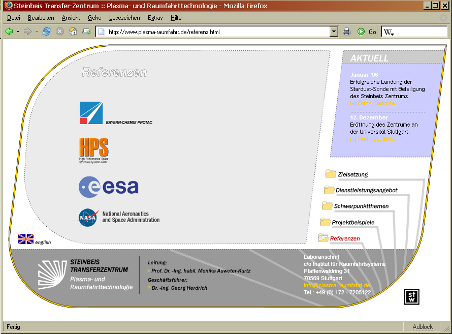 Die Referenzen des Steinbeis-Transferzentrums Plasma- und Raumfahrttechnologie